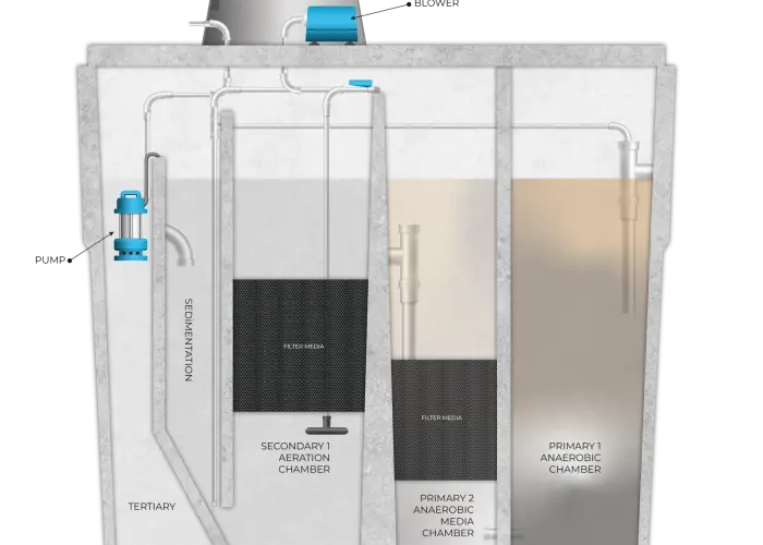 The EnviroTas-AS is an Advanced Secondary Wastewater Treatment System. It is a state-of-the-art treatment plant that recycles all household waste effluent into clean, odourless water suitable for irrigating under lawns and onto the garden.
